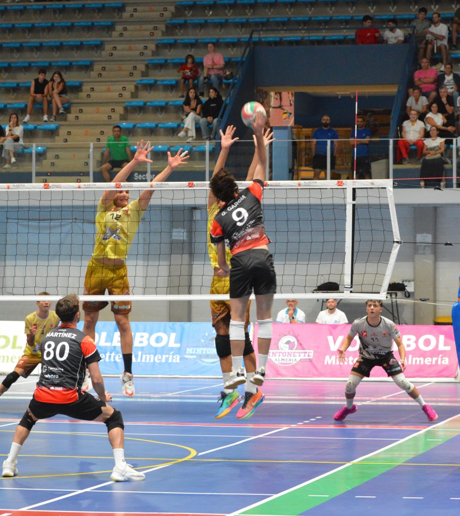 Superliga2 masculina. La categoría de plata del voleibol español disputó la segunda jornada, que tuvo la anulación por meteorología del partido entre el Palma de Mallorca y el Marbella de Málaga. Los de Borja Reyes y Daniel Mata demostraron en el primer set que iban a por todas, y pronto lograron las primeras diferencias (5-10). Una ventaja que les permitió arriesgar en su juego, tanto en saque como en ataque, facilitando el control del partido (15-21) y ganando finalmente por 17-15. Una segunda manga casi calcada de la primera, en la que los andaluces luchaban con uñas y dientes ante un conjunto setabense con una mayor regularidad (7-12). Una eficacia colectiva significativa, los llevo a ganar por 15-25 poniendo el favorable 0-2 a sets en el marcador. El Michelin Mintonette Almería, no se resignaría en ningún momento, pese a la diferencia en el marcador, y en el tercer y ultimo set jugaron a destajo, arriesgando lo indecible, lo que obligaba a los de Xàtiva a ser algo mas conservadores. La igualdad permaneció en el marcador durante una buena parte del periodo (17-17). Los de Xàtiva se adelantaron ligeramente con un ataque contundente (17-19), y llegaron a conseguir con mucho trabajo aumentar la diferencia en los momentos finales con un ataque muy efectivo (20-24), aunque cuando todo parecía cerrado, surgió de nuevo el tesón y la fuerza de los andaluces, que consiguieron empatar (24-24) llevando el final a un resultado incierto, que finalmente lograban resolver el equipo de Xàtiva con dos buenas acciones de Amorós.