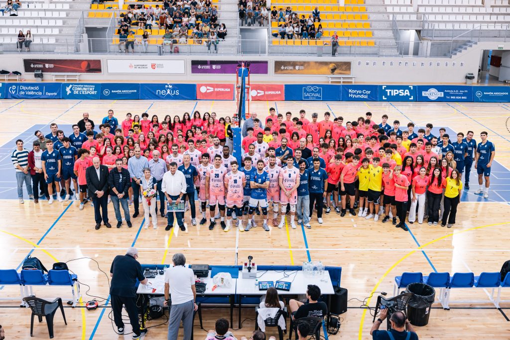 El Léleman Conqueridor se presentó este sábado ante su afición con una buena entrada en Nou Moles. La nueva casa del club valenciano acogió a cada uno de los equipos que componen la entidad. Desde los más pequeños, hasta el equipo de Superliga 1, las plantillas fueron desfilando sobre el parqué para hacerse la foto de familia que marca el punto de partida a la nueva temporada. Además, el acto tuvo un homenaje para la plantilla que logró el ascenso, en la que se reunieron varios de los artífices que llevaron al Conqueridor a la élite del voleibol nacional.
