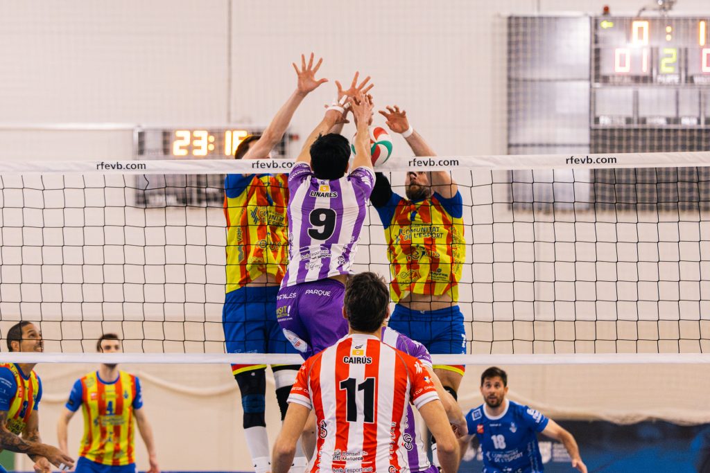 Los campeones de Copa sufrieron para llevarse la primera manga ante un combativo Léleman Conqueridor que le aguantó el pulso hasta el final del set. Los valencianos iban abriendo el marcador siempre con dos de ventaja que se iban igualando en diferentes momentos. Pernambuco con el saque puso el 7-9 pero cuando la rotación pasó a manos de Romaní volvieron las tablas al electrónico (12-12). El conjunto visitante empezó a tomar la delantera por primera vez con tres de ventaja y eso obligó a Pablo Díaz a pedir el primer tiempo muerto del partido (14-17). Un buen Javi Monfort al saque conseguía recortar hasta el 20-21, que provocó la pausa en el banquillo contrario. El central de CV Manacor volvía al saque para ponerle las cosas muy difíciles a los valencianos que consiguieron recuperar terreno hasta el 23-24 con la aparición de Kayque y el remate de Facu Funes. Aléxis González frenaba los envites de sus rivales y en la vuelta a pista Pernambuco no pudo con su saque mantener con al equipo con vida en el set (23-25)